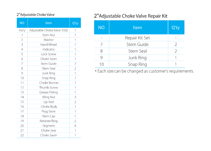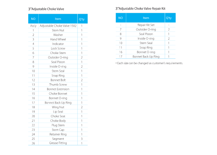 • The stem of adjustable choke are made of high strength alloy steel. The materials have the feature of abrasion resistance, erosion resistance and reliable serviceability.
