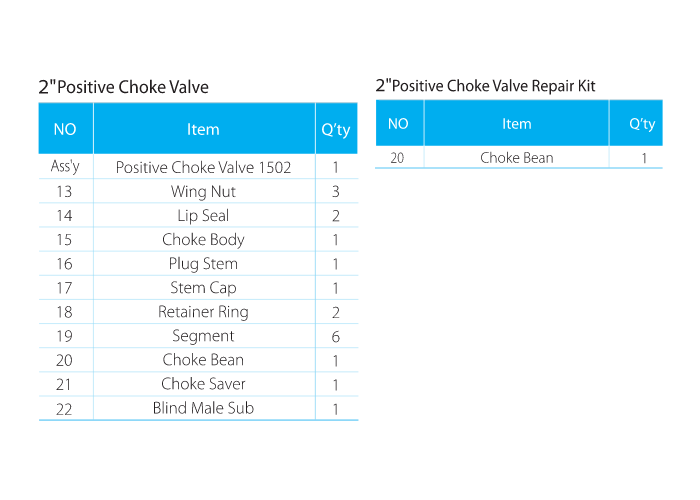 • The bean of positive choke are made of ceramic or hard alloy steel. Both have the feature of abrasion resistance, erosion resistance and reliable serviceability.